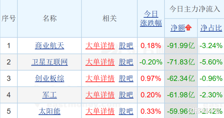 我们先勘察“失血”现场:商业航天。这个板块前阵子还是香饽饽,故事讲的是星辰大海,想象空间巨大。但今天,它成了资金撤离的重灾区。