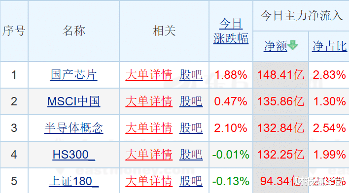 商业航天板块,资金净流出高达91.99亿,排名流出第一;而另一边,国产芯片板块,资金净流入148亿,同样排名流入第一。